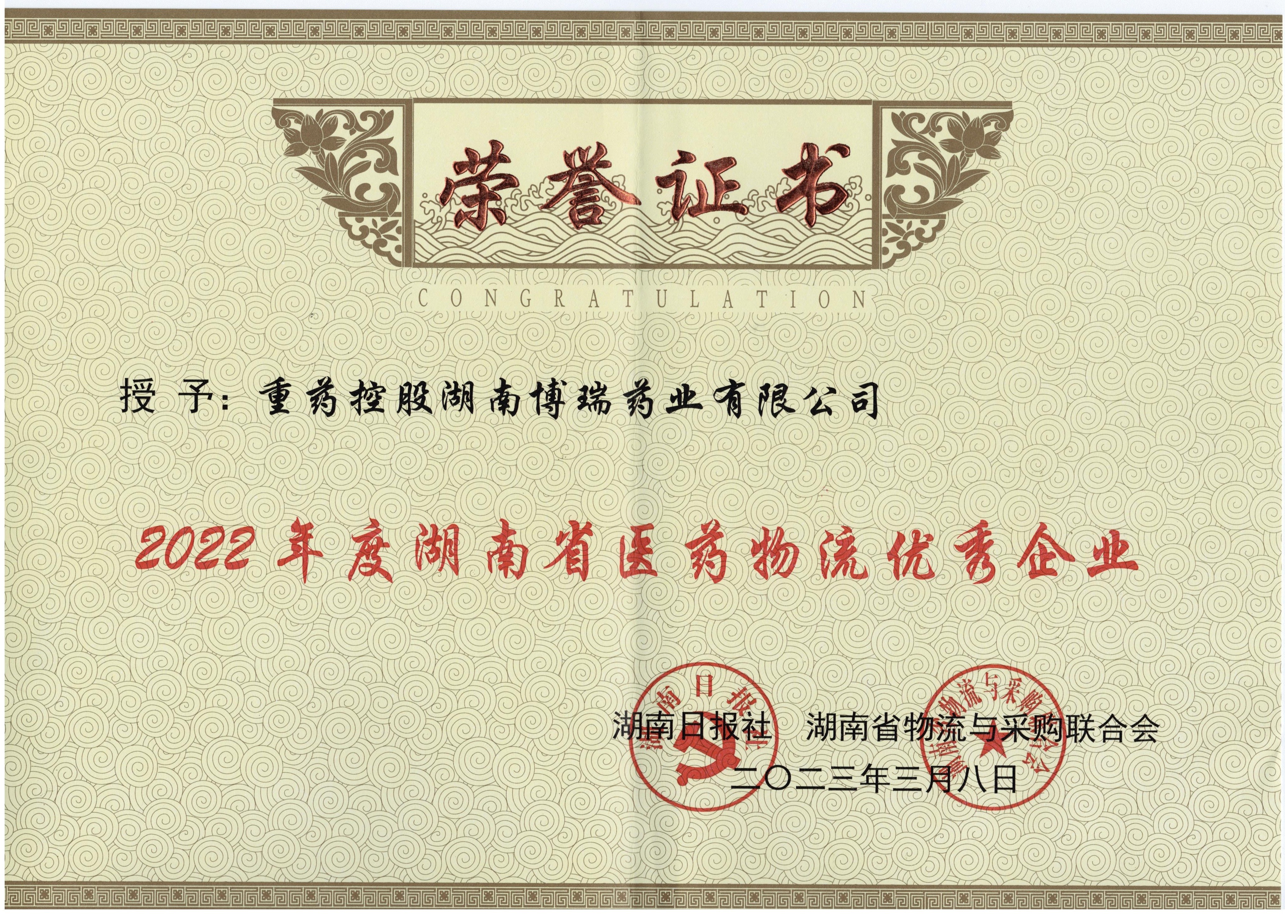 會上發(fā)布了2022年度“物流湘軍總評榜”系列獎項,我司榮獲2022年度“優(yōu)秀冷鏈物流企業(yè)”、“醫(yī)藥物流優(yōu)秀企業(yè)”兩項大獎。