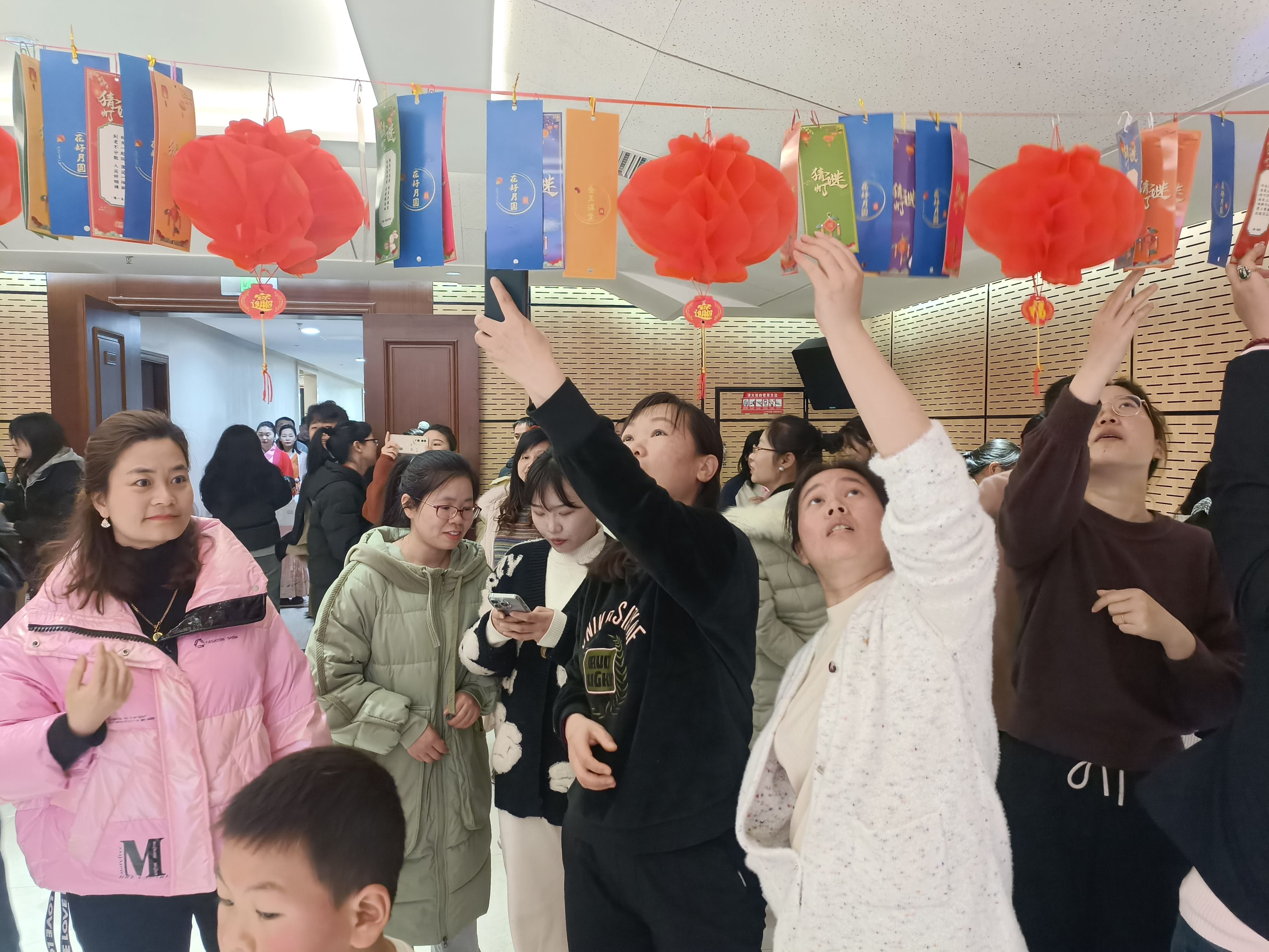 鬧元宵,猜燈謎。燈謎箋五彩繽紛、高高懸掛,謎面內(nèi)容形式多樣,大家三五成群,一雙雙欣喜而激動的眼睛閃爍著智慧的光芒,積極思考著,熱烈探討著,共同體驗燈謎帶來的樂趣,感受著濃濃的文化氣息。
